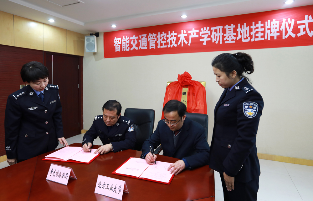 1月25日,我校122cc太阳集成游戏与山东省寿光市公安局交警大队共同签订“智能交通管控技术产学研基地”合作协议,并在山东省寿光市交警大队举行产学研基地挂牌仪式。