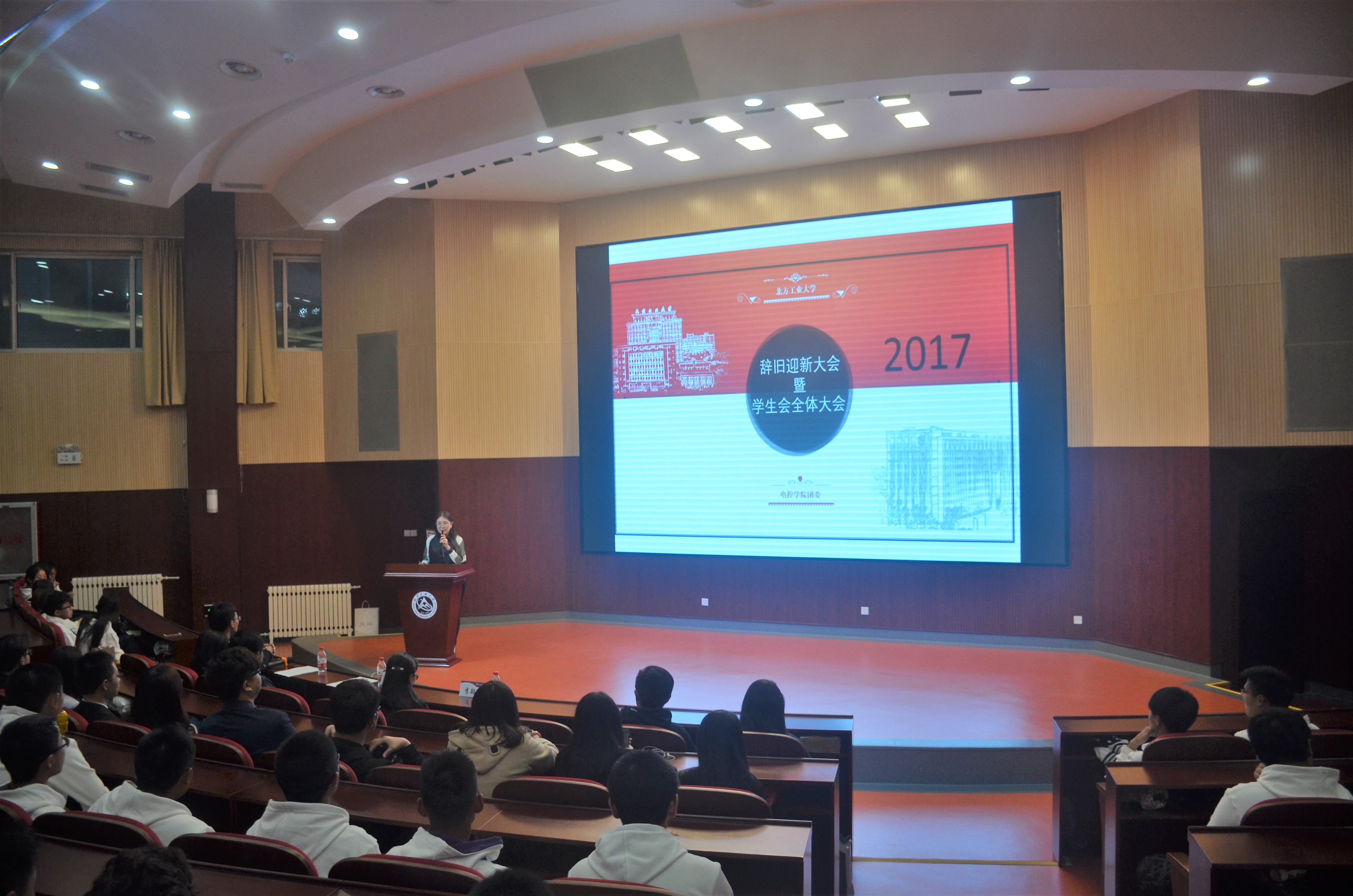 10月17日晚,122cc太阳集成游戏在文化会堂召开2017年团学辞旧迎新暨学生会全体大会。学院党委书记李颖宏、党委副书记史宁、辅导员库颖、王磊,上届团学干部代表及本届团学全体成员到场参加。
