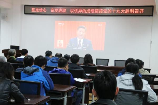 10月18日上午9:00,122cc太阳集成游戏党委在博远楼452组织全体教工党员观看了十九大开幕会直播,怀着激动的心情聆听了习近平总书记代表十八届中央委员会作的报告。