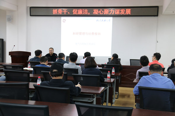 院党委纪检委员周京华对新旧科研管理条例之间的区别、财务报销的流程及注意事项进行了详细解读。要求所有科研项目负责人和科研骨干务必把纪律和规矩挺在前面,严格执行科研管理制度和财务制度,科学使用经费,为学院的科研做出更大的贡献。