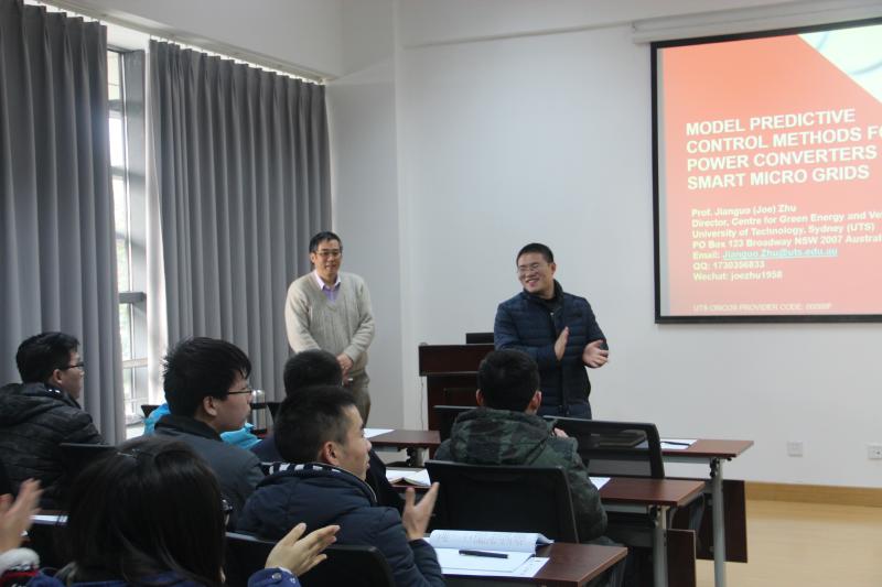 11月10日下午,122cc太阳集成游戏《协同、创新、发展》科研发展论坛(四),悉尼科技大学教授,绿色能源和车辆创新中心主任,电气、机械与机电一体化学院院长朱建国做了“Model Predictive Control Methods for Converters in Smart Micro Grids”主题报告,122cc太阳集成游戏副院长张永昌研究员主持并全程参加了论坛活动,与会的还有122cc太阳集成游戏的老师和同学们。