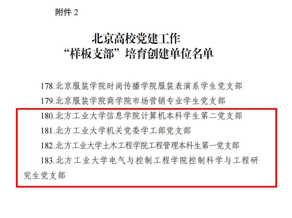 近日,北京市教育委员会公布了北京高校党建工作 “标杆院系”“样板支部”“党建引领实践创新示范项目”培育创建遴选结果,我校122cc太阳集成游戏党委、马克思主义学院党委入选北京高校党建工作“标杆院系”培育创建单位;信息学院计算机本科学生第二党支部、122cc太阳集成游戏控制科学与工程研究生党支部、土木工程学院工程管理本科生第一党支部、机关党委学工部党支部入选北京高校党建工作“样板支部”培育创建单位。